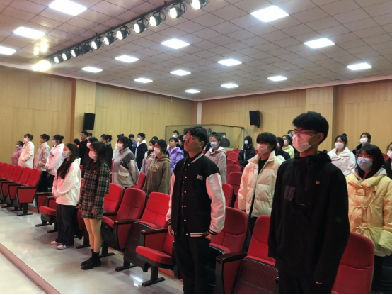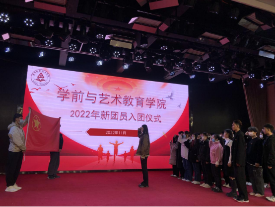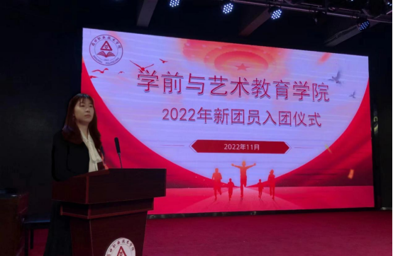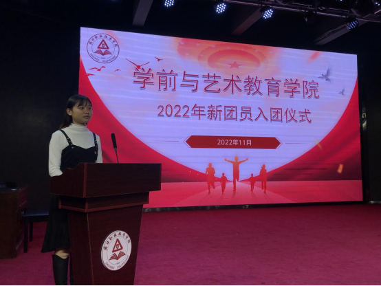 为深入学习贯彻党的二十大精神,加强共青团组织队伍建设,12月11日,学前与艺术教育学院在一楼演播厅举行2022年新团员入团仪式,团总支书记刘馨馨和36名新团员参加仪式。