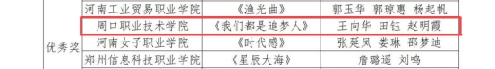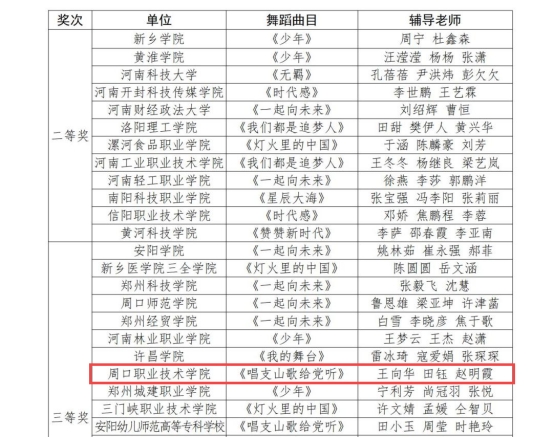 56.11月25日,我院田钰老师指导的《唱支山歌给党听》《我们都是追梦人》舞蹈节目分别获河南省“舞动青春”视频接力活动三等奖和优秀奖。
