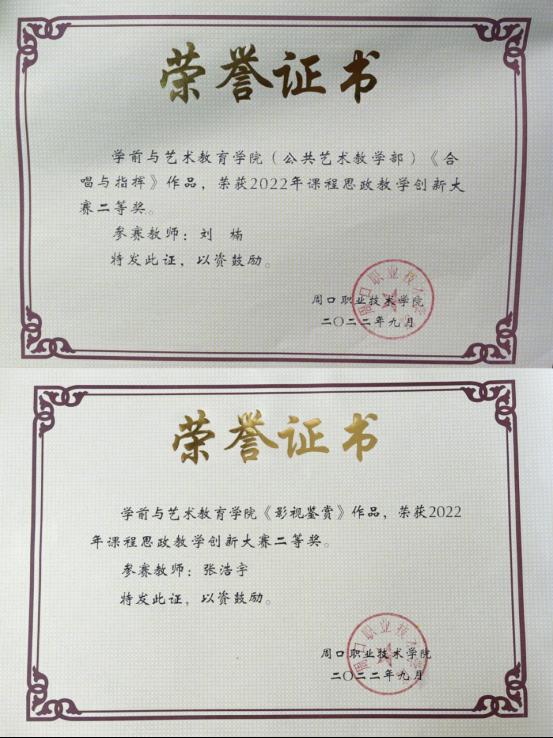27.7月6日,刘心瑜、李晨阳、马颖超三位老师分别荣获周口市第三届专业声乐器乐大赛一等奖。
