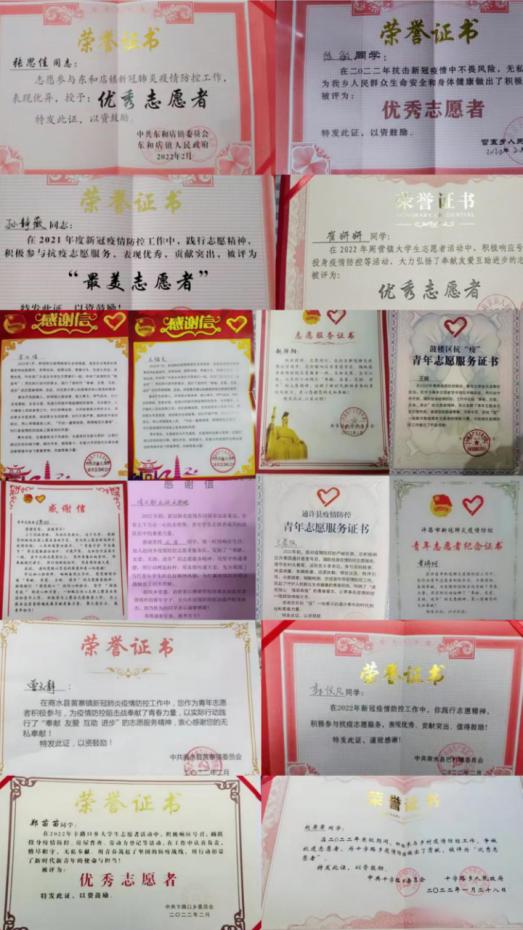 4.2月4日-15日,我院学子陆续收到抗疫优秀志愿者荣誉证书和感谢信。