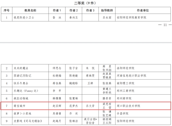 35.8月7日,我院学生赵亚辉、范梦杰、吕文芳制作的《萌宝城市》获河南省第十九届中小学优秀玩具制作高校组二等奖。(指导教师梁思雨、王雪)