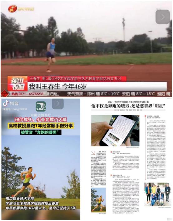 45.10月11日,我院王春生老师晨跑中助人事迹被大河报、河南卫视、教育厅官方抖音等媒体相继报道。