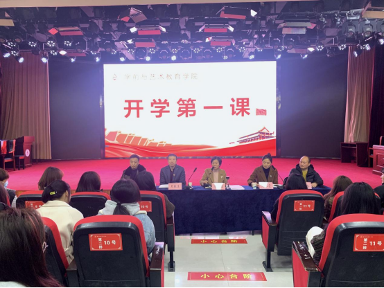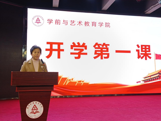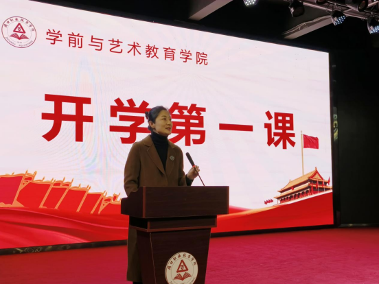 为全面落实立德树人根本任务,进一步加强教风学风建设,帮助同学们更好的适应疫情后的大学校园生活,2月15日晚7点,副校长李秀萍在学前与艺术教育学院演播厅为同学们讲授开学第一课。学院领导班子及学生代表共180余人聆听开学第一课。学生处长刘冬霞主持开学第一课。
