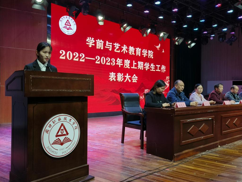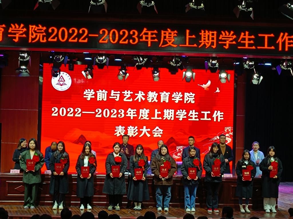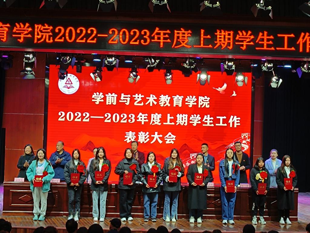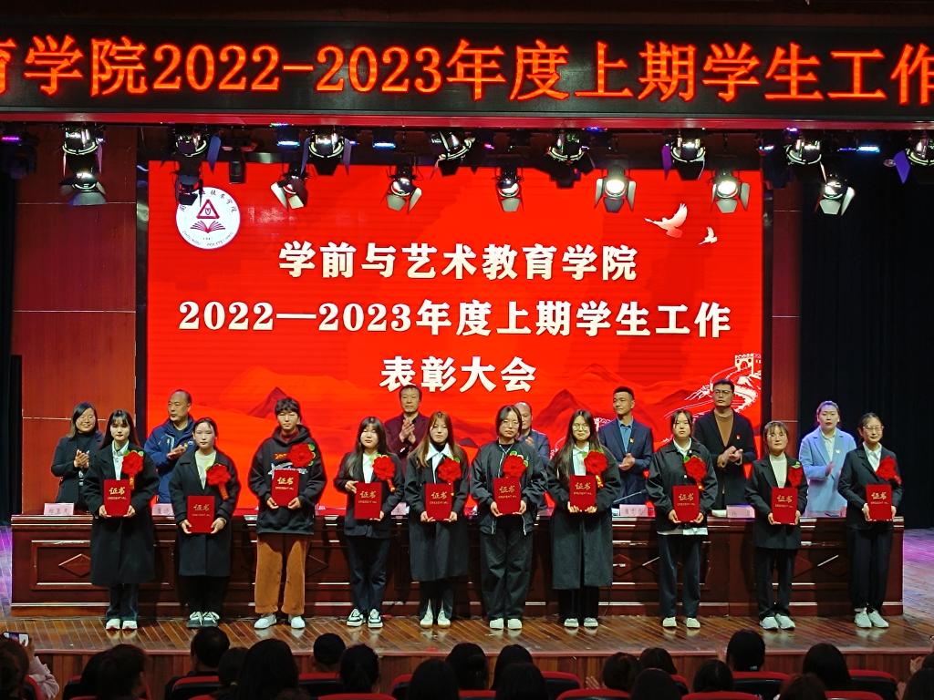 会上,副院长崔彤彤宣读《学前与艺术教育学院关于表彰2022-2023学年第一学期学院三好学生、优秀学生干部、十佳班长、先进集体的决定》。领导班子为三好学生、优秀学生干部、十佳班长和先进班集体代表颁发荣誉证书。