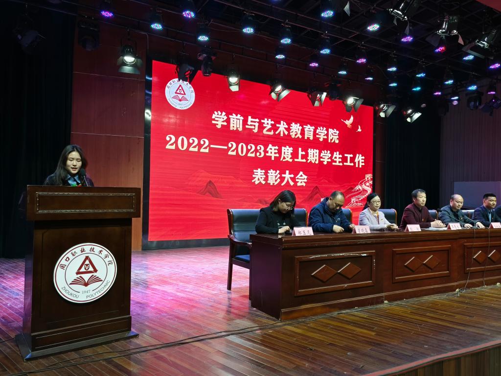 3月1日下午,学前与艺术教育学院2022—2023年度上期学生工作表彰大会在校砺德厅召开,学院领导班子出席会议,全体辅导员与800余名学生参加会议。大会由院长高岐奎主持。