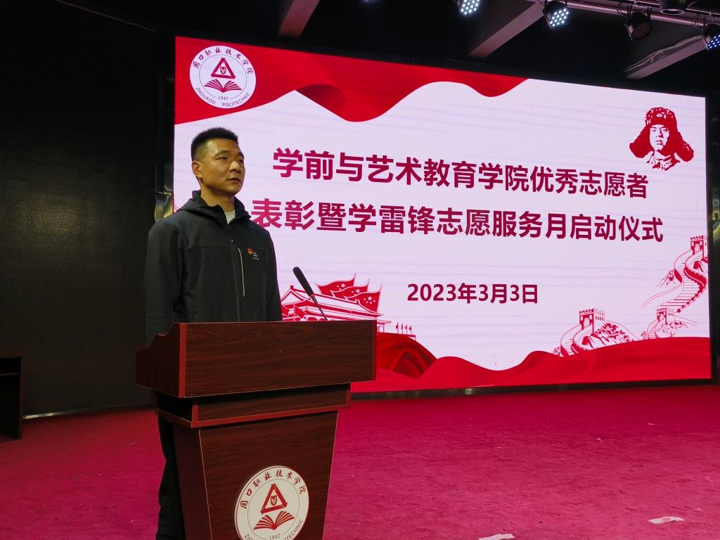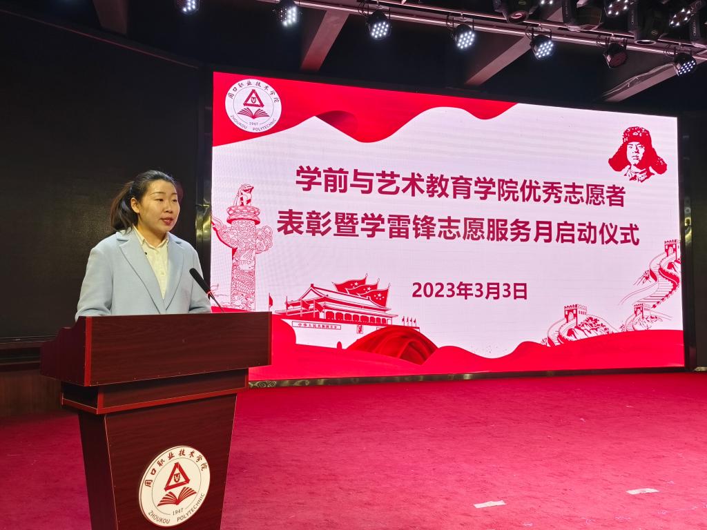 活动在嘹亮的国歌声中拉开帷幕,学前与艺术教育学院学管办主任郑玉凡宣读了表彰决定,号召全体青年学生认真学习雷锋精神,积极投身志愿服务事业,进一步推动学院精神文明建设。