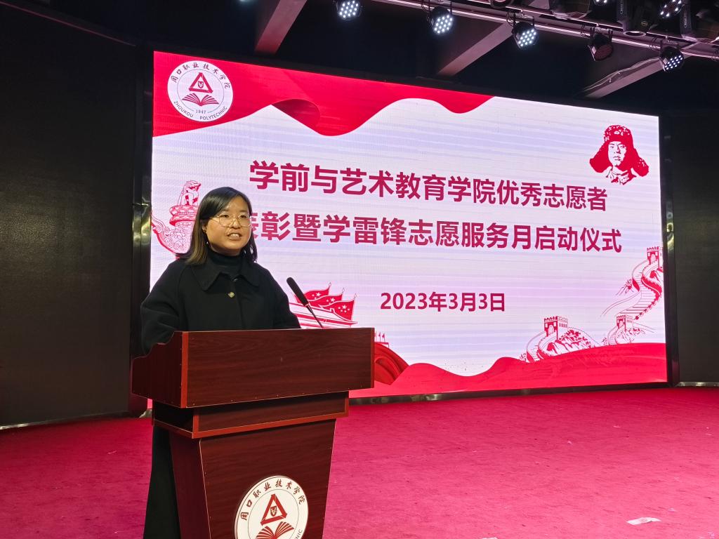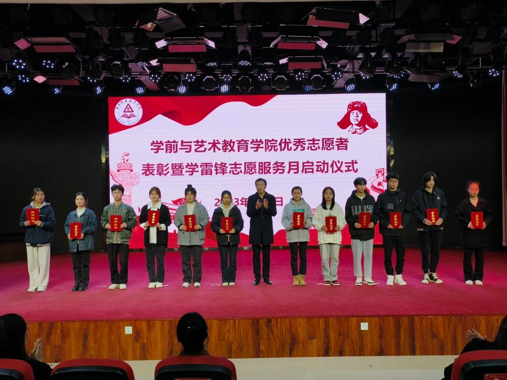 为贯彻落实党的二十大精神,积极推进学雷锋活动走深走实,3月3日下午,学前与艺术教育学院在一楼演播厅举行优秀志愿者表彰暨学雷锋志愿服务月启动仪式。校学生处处长刘冬霞、团委书记张华珍,学前与艺术教育学院班子成员、辅导员、团学干部及志愿者代表参加仪式。仪式由学院副院长崔彤彤主持。