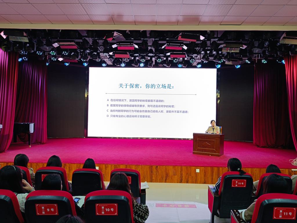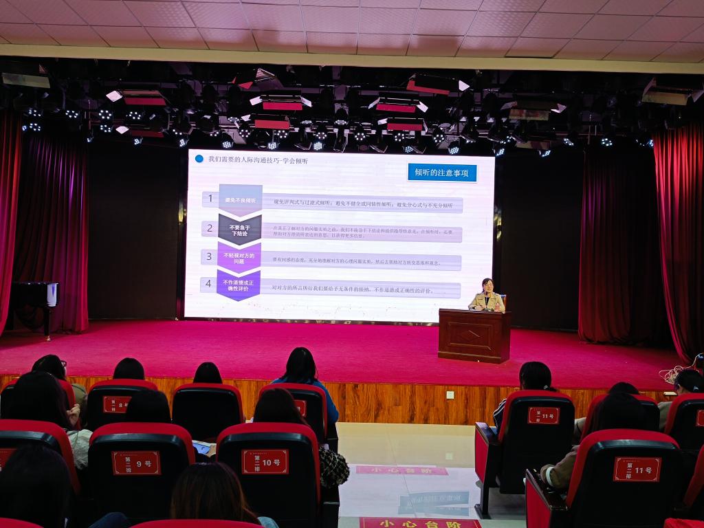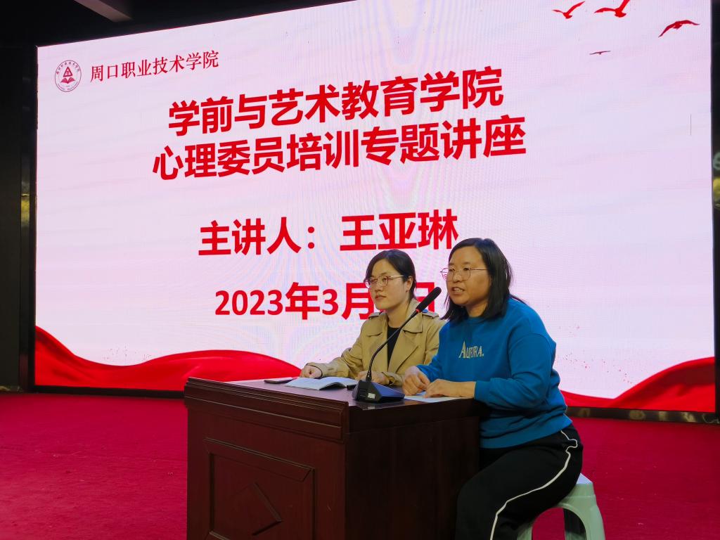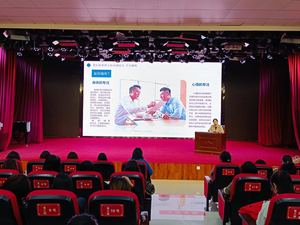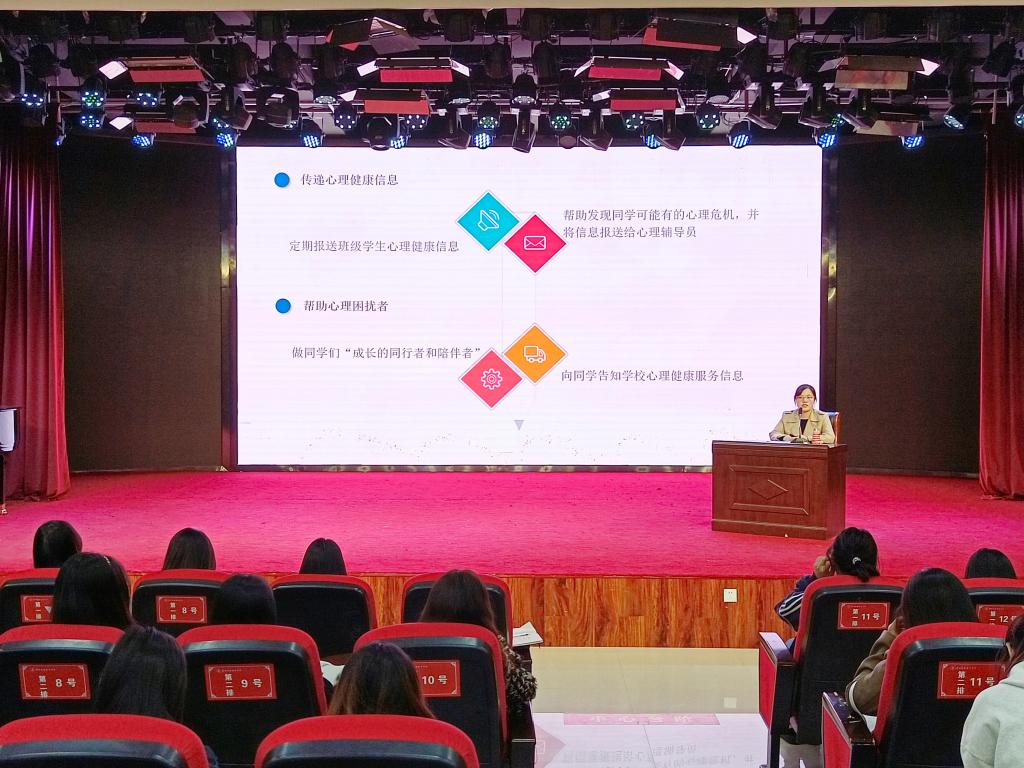 为夯实我院心理健康教育工作基础,落实心理育人模式,有效实行朋辈互助工作,3月8日晚上,学前与艺术教育学院在一楼演播厅开展心理委员培训专题讲座。讲座由心理健康中心王亚琳老师主讲,学管办主任郑玉凡主持,21、22级各班寝室长和心理委员到场聆听。