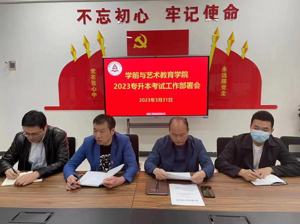 为确保我校2023年专升本考试工作安全、有序、平稳进行,3月31日,学前与艺术教育学院在四楼党员活动室召开2023年专升本考试工作部署会。党总支书记王春生、院长高岐奎、副院长崔彤彤、教学办主任杨晨及2020级全体辅导员参加会议。会议由党总支书记王春生主持。