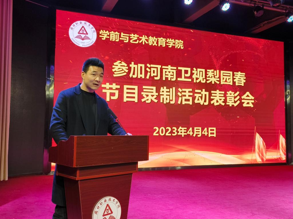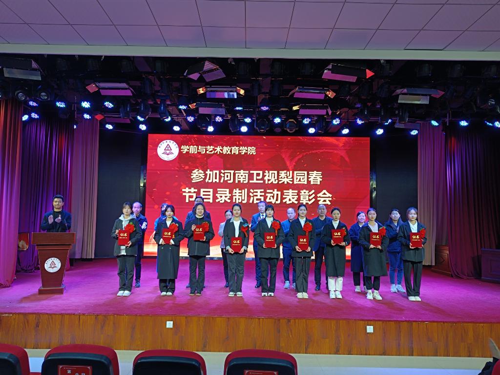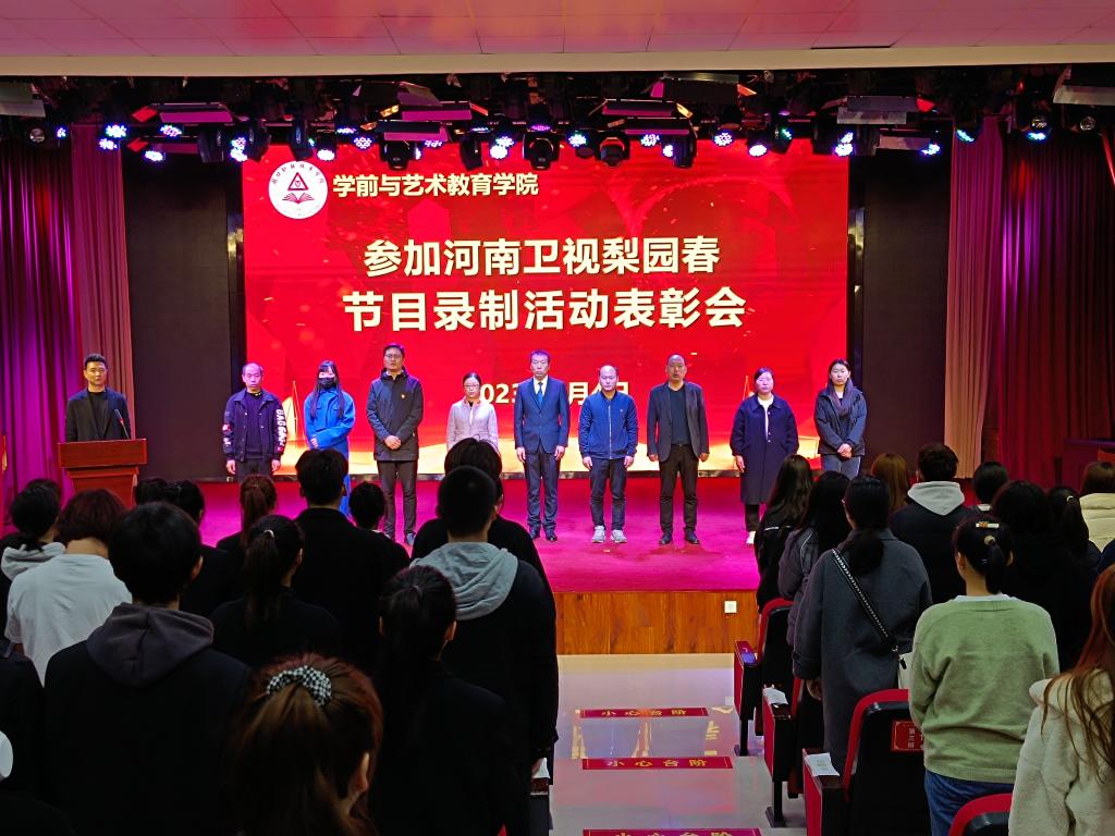 为鼓励先进,激励他人,4月4日下午,学前与艺术教育学院在艺术演播厅隆重召开参加河南卫视梨园春节目录制活动表彰会。学院党总支书记王春生、院长高岐奎带领学院班子成员,党委宣传部宣传科长,院团总支书记及相关指导教师出席会议,各班班委、学生代表参加会议。会议由副院长崔彤彤主持。