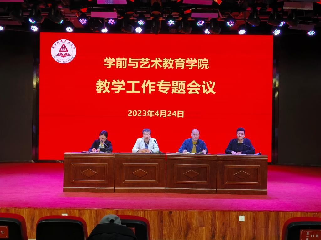 为进一步加强我院教育教学管理,全面提高教育教学质量,关注学生身心健康,4月24日下午,学前与艺术教育学院在一楼演播厅召开教学工作专题会议,党总支书记王春生、院长高岐奎、副院长耿润、副院长崔彤彤出席会议,教研室主任及全体辅导员参加会议。