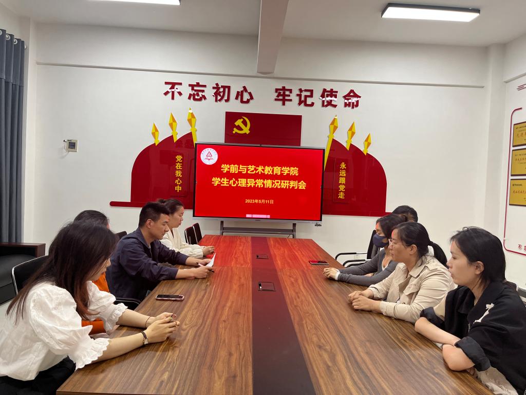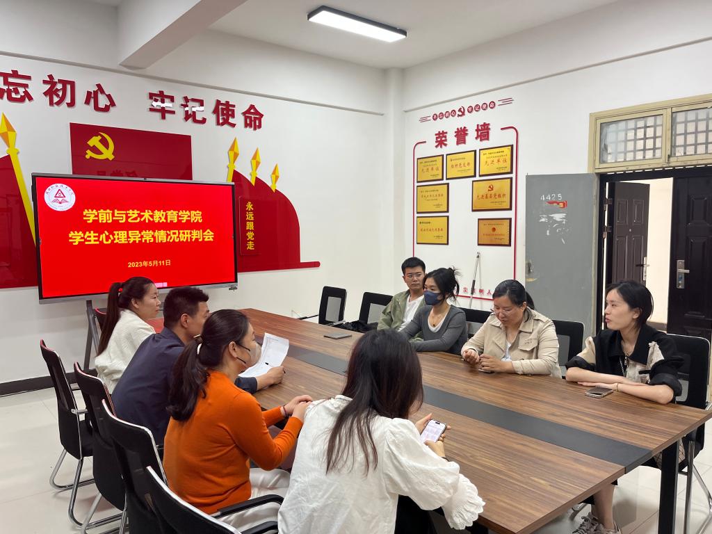 在“5·25”大学生心理健康日来临之际,为交流心理危机案例处理技巧,提高辅导员心理疏导能力,共筑学生心理健康。5月11日,学前与艺术教育学院在四楼党员活动室召开学生心理异常情况研判会。副院长崔彤彤、学管办主任郑玉凡、团总支书记刘馨馨及各辅导员参加会议。