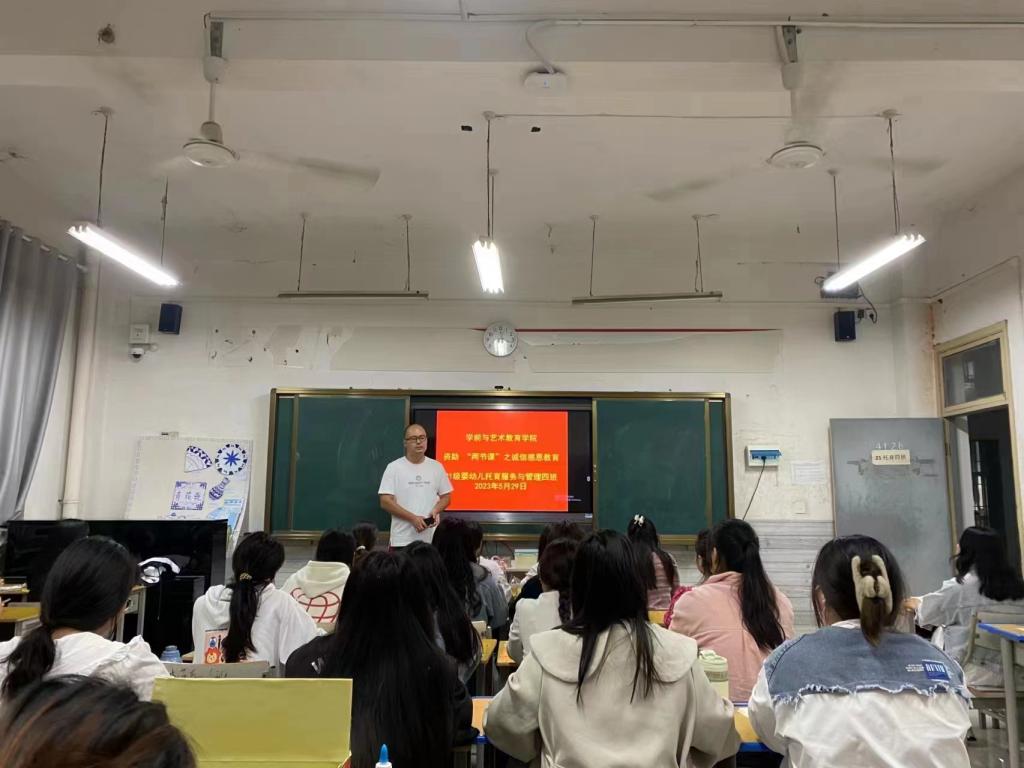 为进一步做好学生资助政策宣传工作,教育学生诚实守信、励志成才,6月1日,学前与艺术教育学院开展2022-2023学年第二学期学生资助“两节课”之诚信感恩教育主题班会。学院全体学生参加活动。