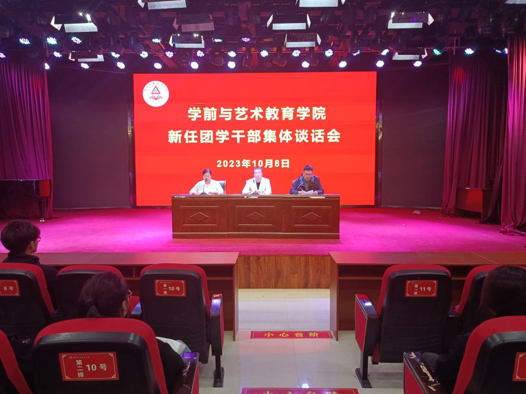 为了进一步提高团学干部的政治素养和工作能力,打造一支信念坚定、心系青年、能力过硬、作风优良的团学干部队伍,10月8日下午5点,学前与艺术教育学院在一楼艺术演播厅召开新任团学干部集体谈话会,党总支书记王春生、副院长杨晨、学管办主任郑玉凡出席会议,学院新任团学干部、各班班长和团支书参加会议。谈话会由学管办主任郑玉凡主持。