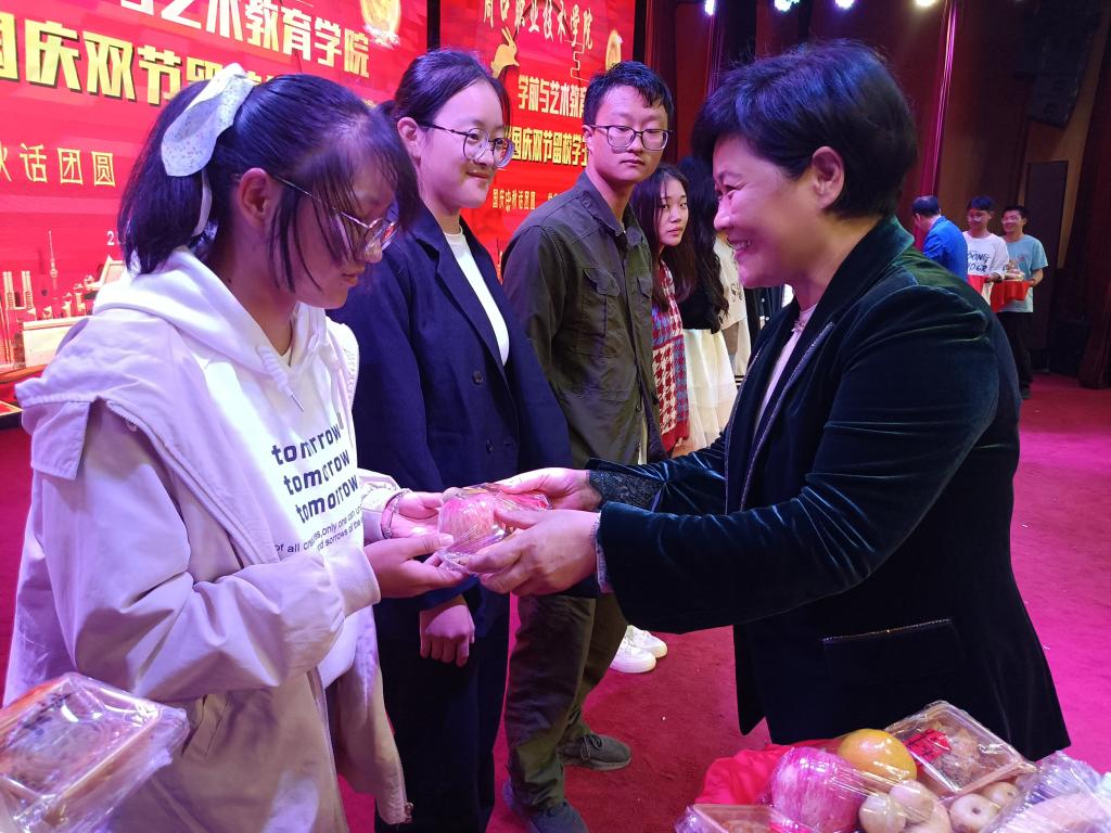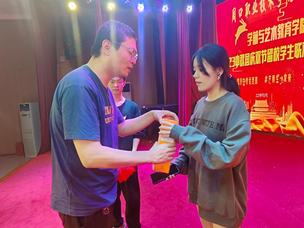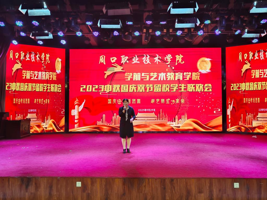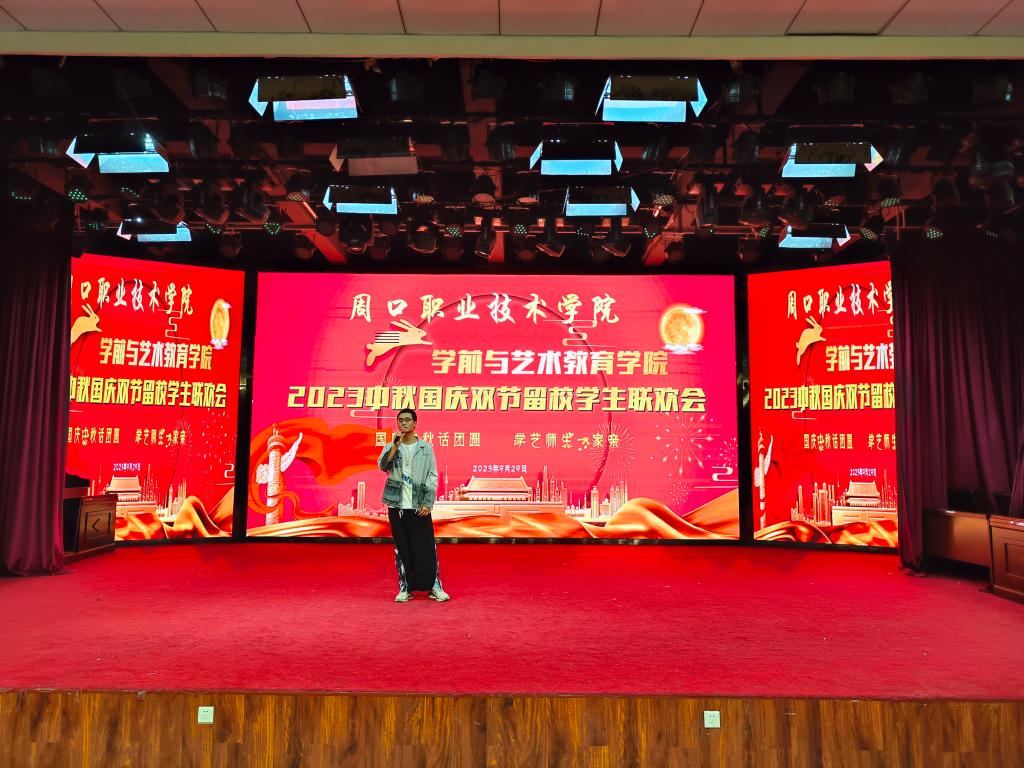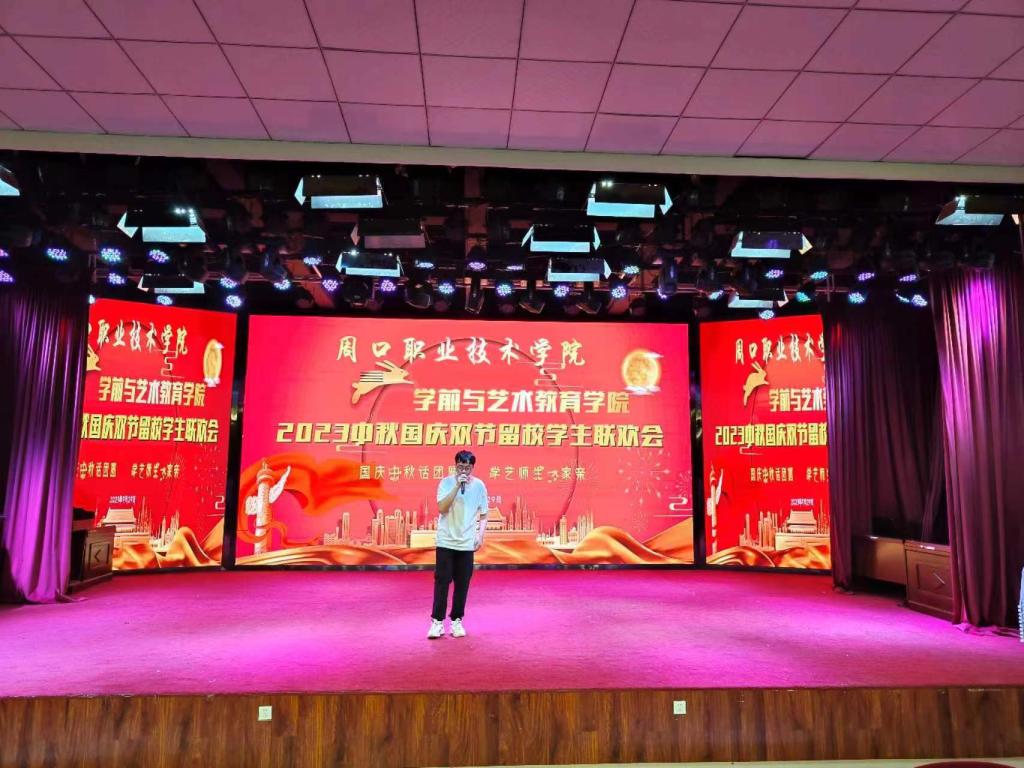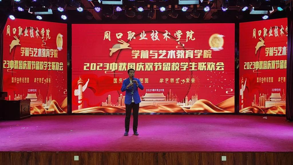 随后,留校学生代表23级学前教育三班李梅同学发言。首先,她对学院领导和老师们表示最诚挚的感谢。她通过本次学院举办的中秋国庆双节留校学生联欢会,感受到了“家”的温暖和关怀。她表示,在未来的学习和生活中,一定会更加努力,实现自己的梦想。