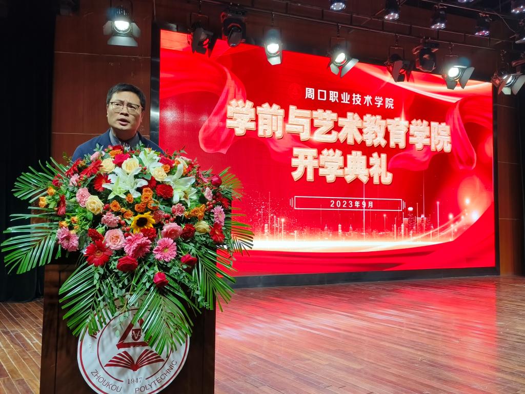 万里征程秋风劲,风帆再起展新篇。9月27日下午3点,学前与艺术教育学院在学校砺德厅举行2023级开学典礼,党总支书记王春生、院长高岐奎携学院领导班子、教研室主任、23级辅导员及23级全体新生参加此次活动。活动由副院长杨晨主持。