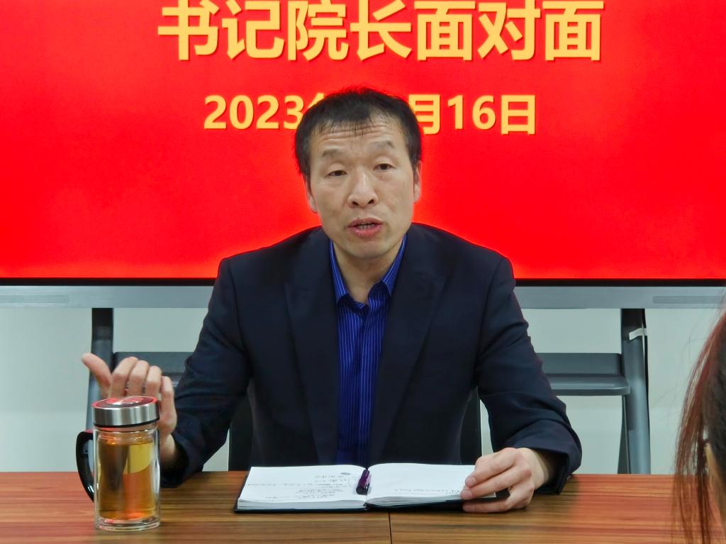 党总支书记王春生在与学生代表交流的过程中,充分了解同学们在学习、生活中遇到的困难,王书记表示,结合同学们的意见和建议,学院将进一步优化工作方法,提升管理服务水平,为学生解决实际问题,同时也希望同学们能积极探索求新知,努力提高解决实际问题的能力,共同推动学院高质量发展。