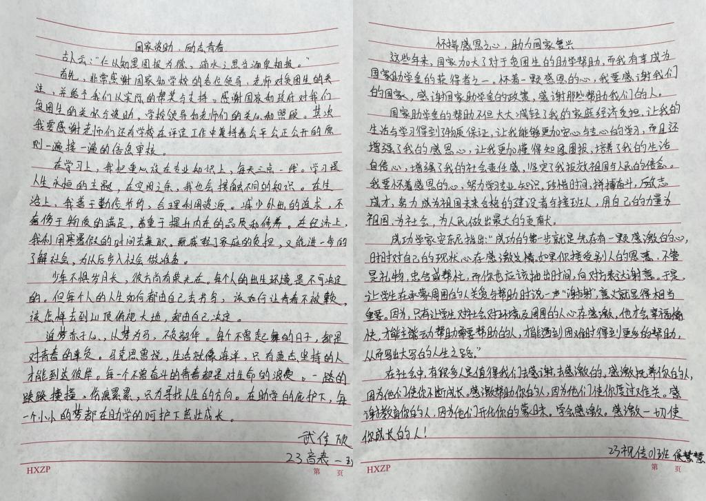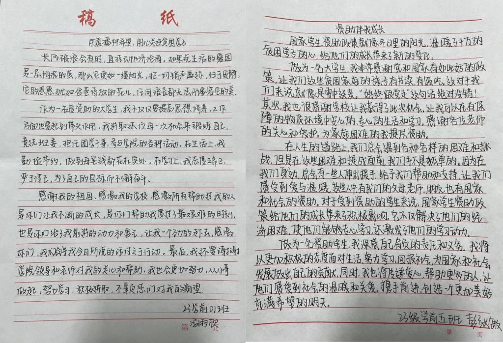 为大力宣传国家资助政策及成效,进一步加强学生思想政治教育,激发学生爱国情怀,培养学生诚信感恩意识,10月16—20日,学前与艺术教育学院开展2023-2024学年第一学期学生资助“两节课”之“感恩助学,筑梦铸人”主题征文活动。学院全体在校生参加本次活动。