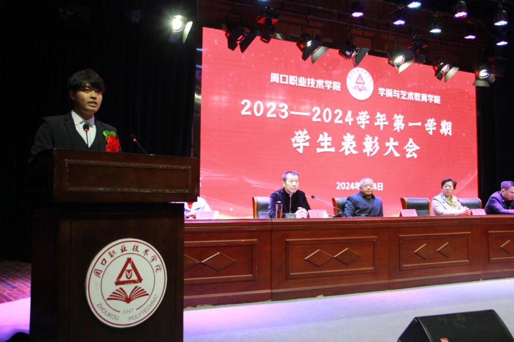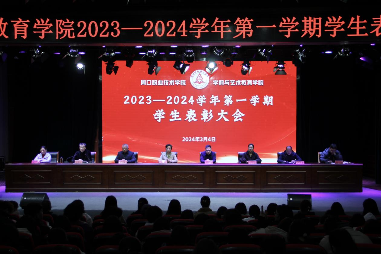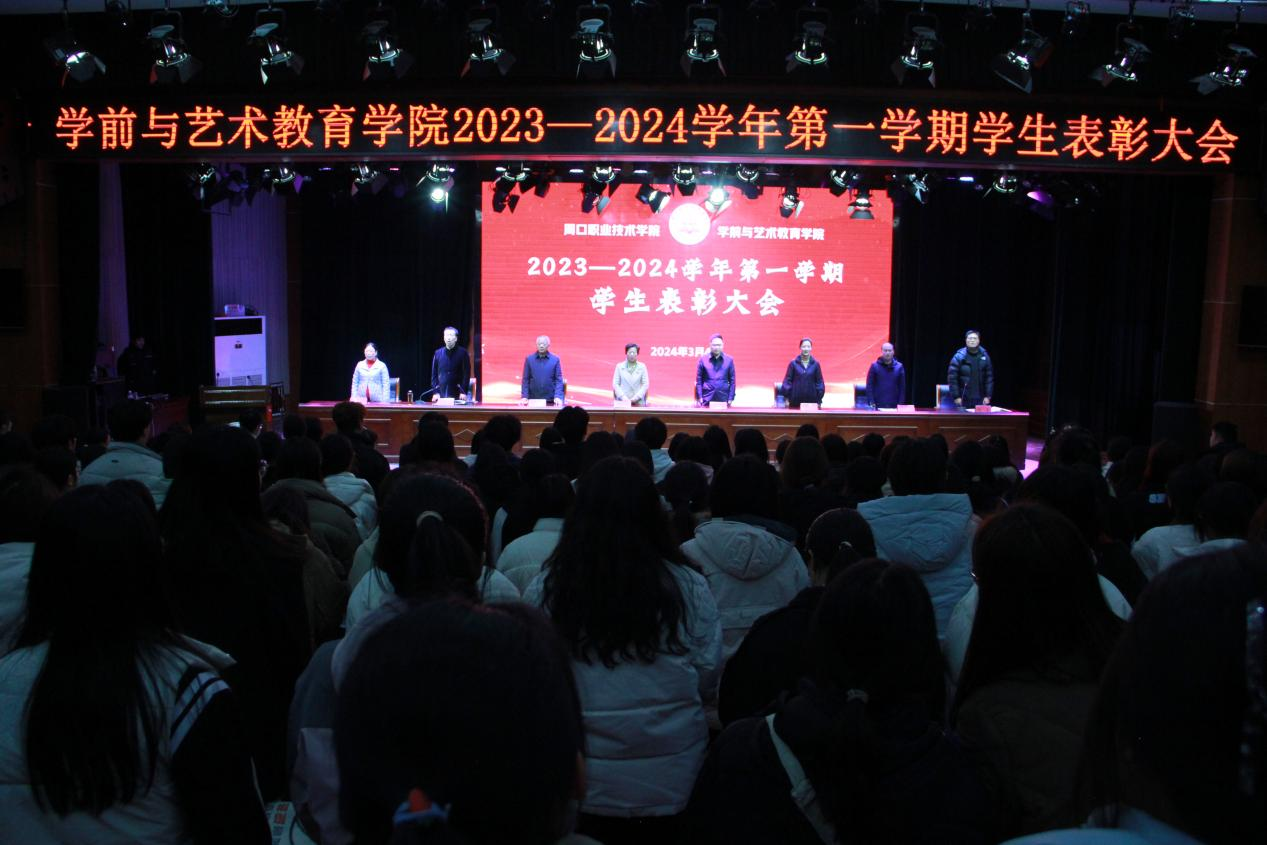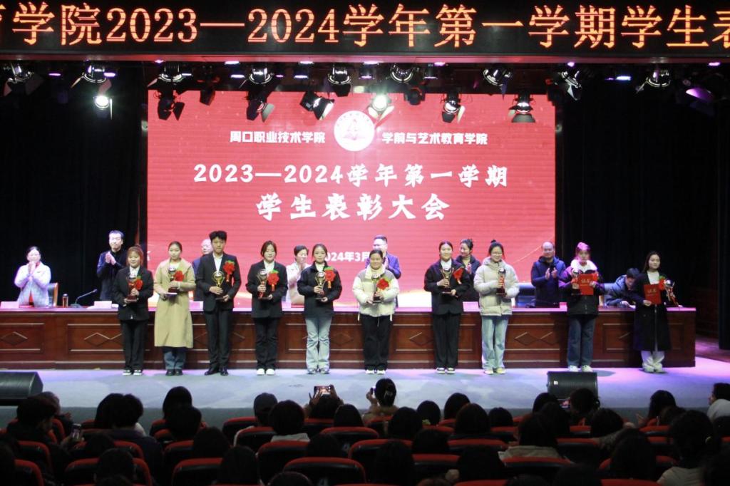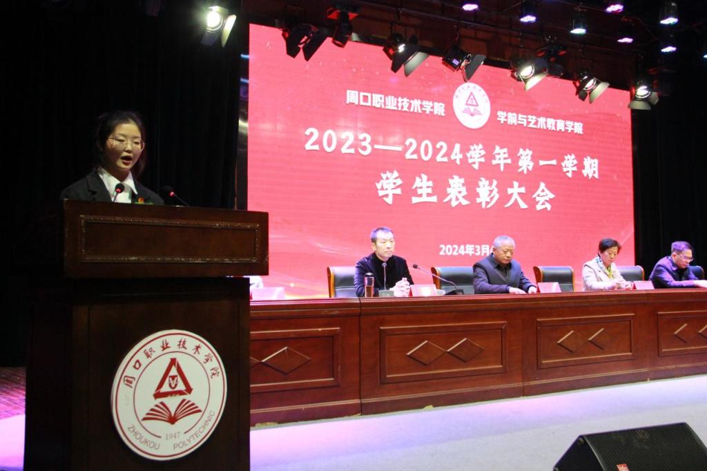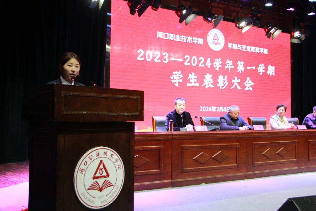 为表彰先进,树立典型,充分发挥典型引领和示范带动作用,激励广大同学奋发向上、争先创优,3月4日下午6点,学前与艺术教育学院2023—2024学年第一学期学生表彰大会在校砺德厅召开,周口职业技术学院副校长李秀萍、副校长王隼,校党委宣传部部长万四新,学生处处长刘冬霞出席会议,学前与艺术教育学院领导班子、教研室主任、辅导员、获奖学生及23级全体学生参加会议。大会由副院长杨晨主持。