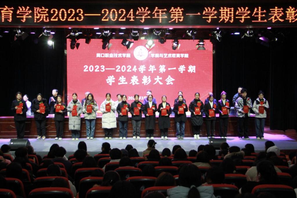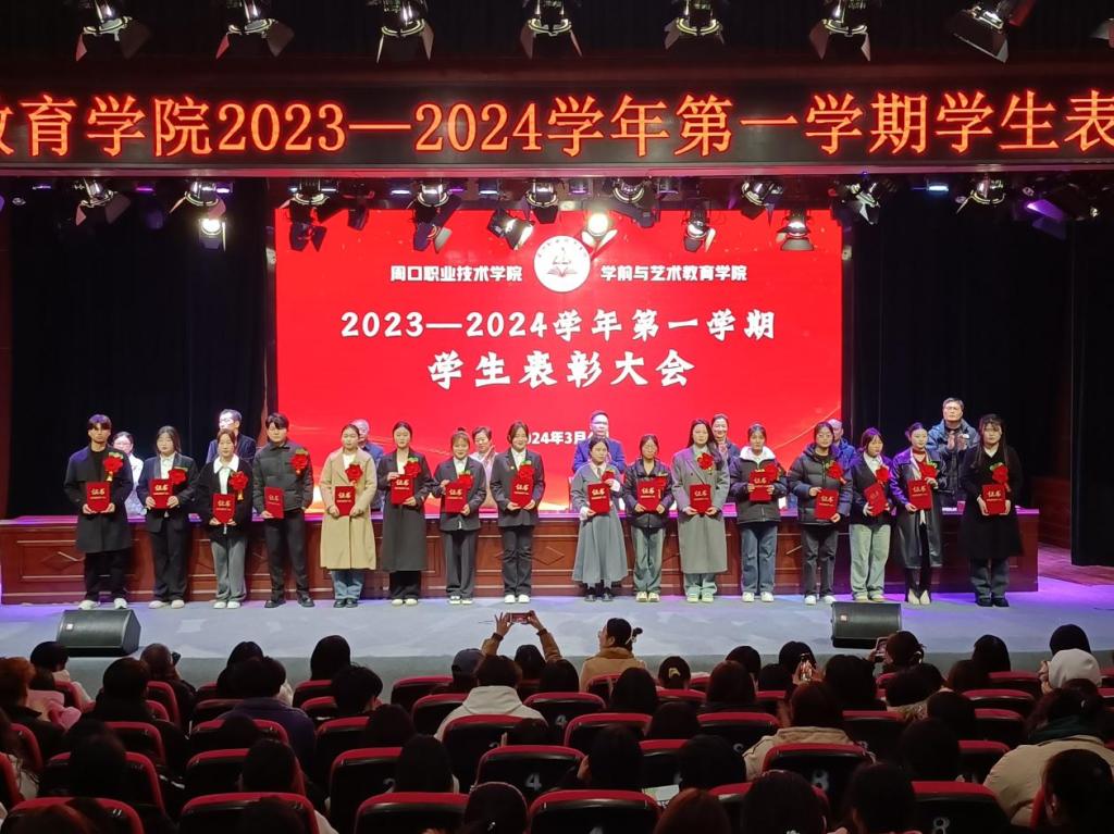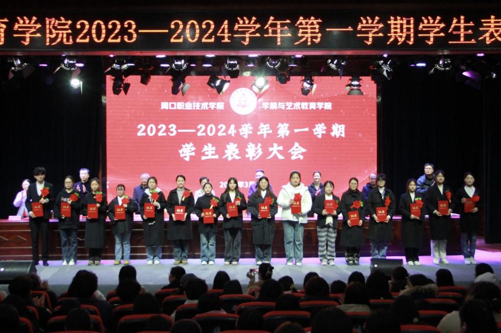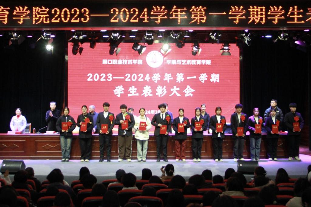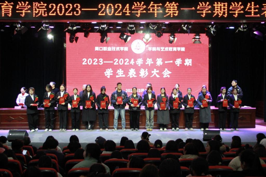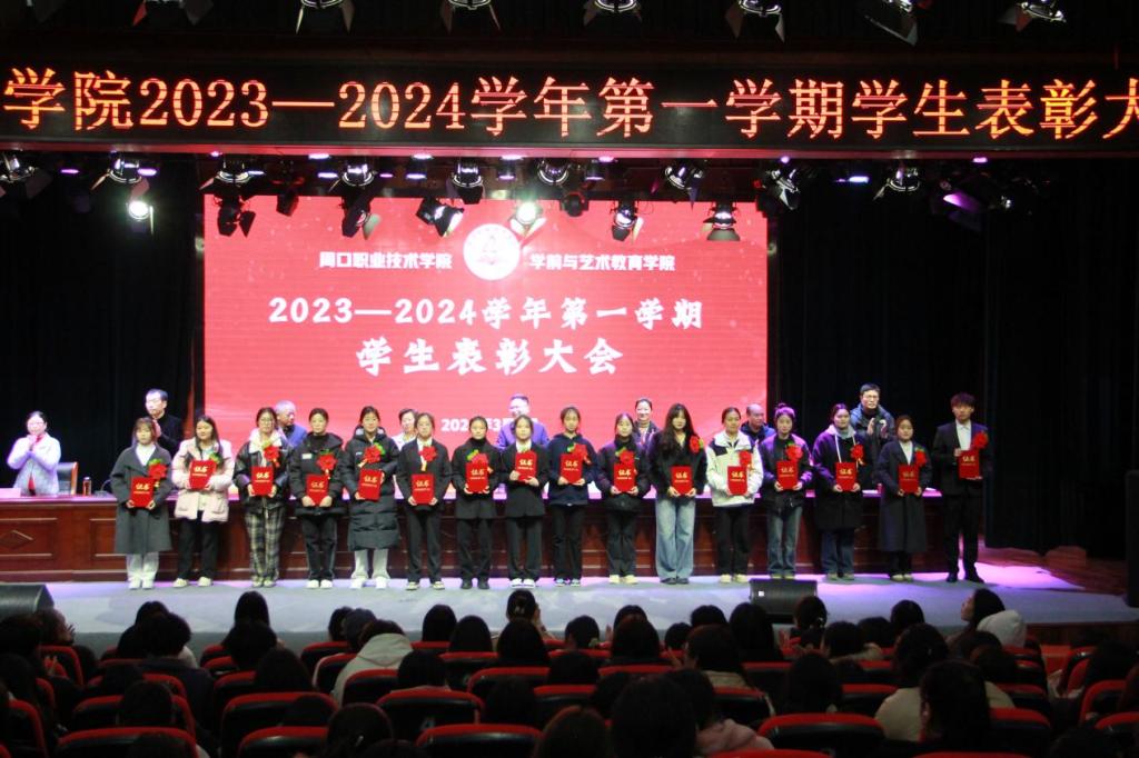 会上,院长高岐奎宣读《学前与艺术教育学院关于表彰2023-2024学年第一学期学院三好学生、优秀学生干部、十佳班长、先进班集体的决定》。与会领导为三好学生、优秀学生干部、十佳班长和先进班集体代表颁发荣誉证书、奖杯。