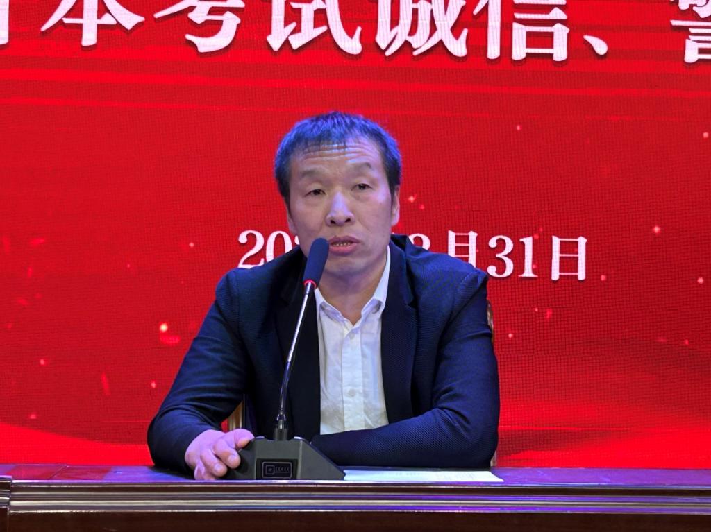 高岐奎强调,各位考生要深刻认识到专升本诚信考试的重要性,了解关于考试违纪、作弊行为的认定及处理方式,提醒各位考生切勿触摸考试红线,认清考试舞弊的危害性,做到认真备考,诚信应考。最后他提醒考生考前要适度放松、劳逸结合,积极调整心态,查漏补缺,提高复习效果,考出理想成绩!