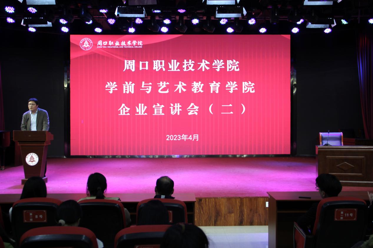 为让毕业生全面深入认识当前就业形势,搭建学生求职、实习与企业招聘的平台,4月2日晚,学前与艺术教育学院在艺术演播厅举办第二场企业宣讲会。学前与艺术教育学院院长高岐奎、学管办主任郑玉凡出席宣讲会,就业指导员董璧君、辅导员代表及22级音乐表演、视觉传达与设计专业毕业生代表聆听宣讲会。本次宣讲会由副院长杨晨主持。