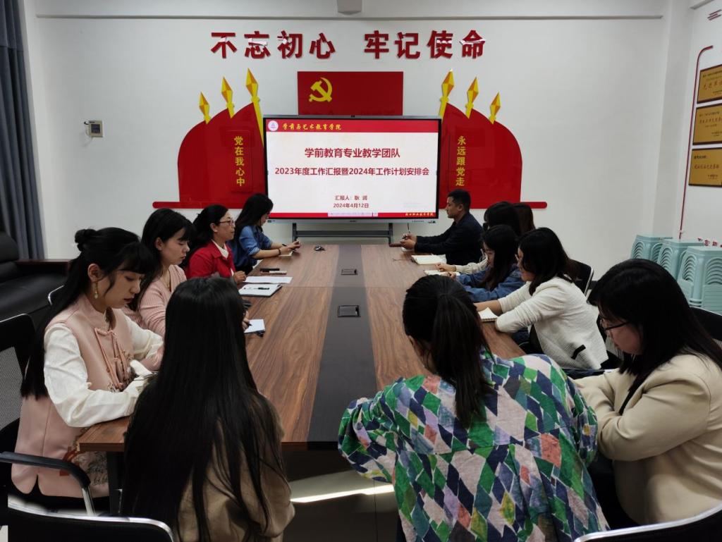 进一步明确2024年专业教学团队工作方向,持续推进团队教学工作改革创新。4月12日,学前与艺术教育学院学前教育专业教学团队在四楼会议室召开2023年度工作汇报暨2024年工作计划安排会。学前与艺术教育学院副院长耿润主持并汇报、教学团队成员参加会议。