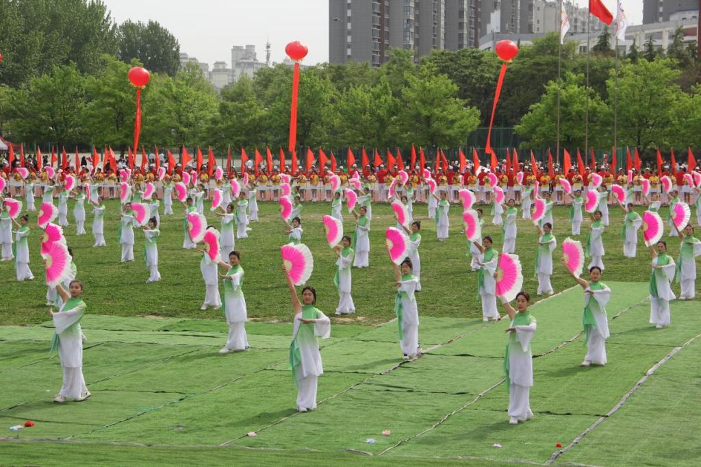 “最美是人间四月的天,一江春水绿如蓝。”嫩绿的裙裾在歌声中旋转飞扬,为这人间四月天增添了别样风采。完美默契的配合,犹如精灵般轻盈,绽放青春之花,一姿一态尽显婀娜,扇子在空中翻飞、旋转、摇曳一招一式尽显学艺学子风貌。