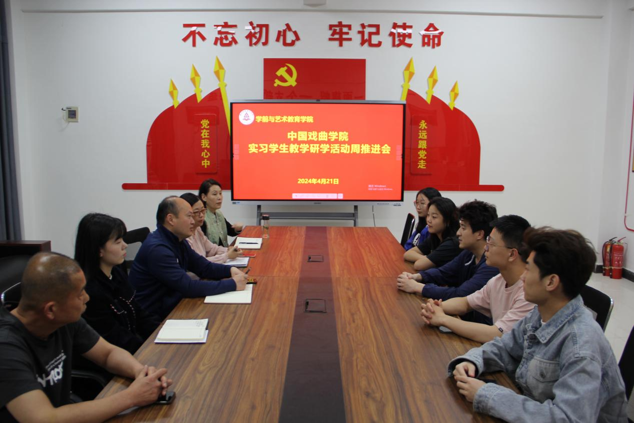 4月21日下午,中国戏曲学院学生前来学前与艺术教育学院开展为期一周的实习研学活动,学前与艺术教育学院院长高岐奎、副院长耿润、教管办主任李晨阳、戏曲教研室主任周琦出席实习研学活动安排部署会议,戏曲专业教师赵保军及中国戏曲学院学生参加会议。