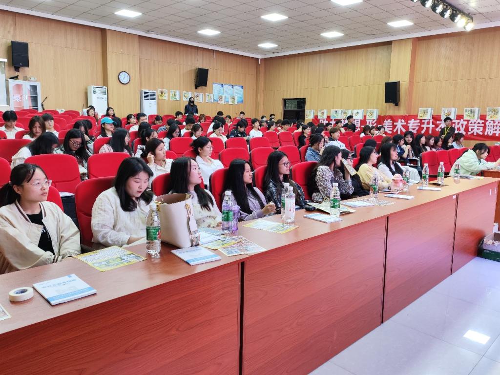 为使学院学生全面深入了解专升本政策,做好未来学习规划,提升在校生专升本录取率,4月21日晚,学前与艺术教育学院邀请形一美术在艺术演播厅举办专升本主题教育讲座,22、23级视觉传达设计专业、服装设计专业学生到场聆听。