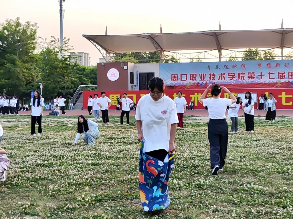 同学们穿上了可爱的跳袋,化身活泼的“小袋鼠”。他们手提跳袋,奋力向前跳跃。每一次跳跃都是对身体的挑战,彰显出青春活力与激情。