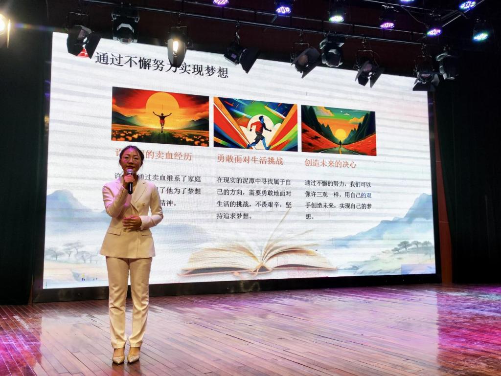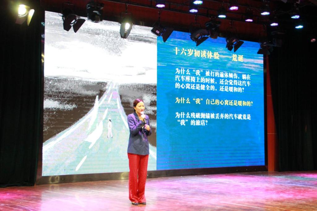 分享会上,九位学生分享者带来《苦难辉煌》《我心归处是敦煌》《云边有个小卖铺》《万物有灵且美》《知行八谈》等九本书籍进行分享,以书为媒、以书会友,以阅读为桥,分享自身的阅读心得。她们通过独特的视角和深入的理解,向大家展示书籍的魅力与阅读的乐趣。随后,文化教育学院教师尚思佳带来书籍《十八岁出门远行》进行分享,她结合自己的求学经历,讲述了在面对人生重大选择时的迷茫与挣扎,但始终保持着乐观的心态,积极面对生活的挑战。尚老师鼓励大家,在学习的道路上,即使遇到枯燥和困难,也要寻找乐趣,明确自己的人生方向。