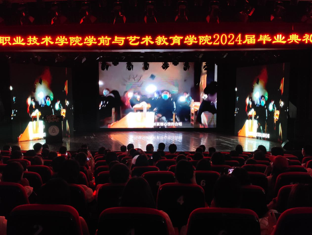 典礼开始前,在座人员共同观看毕业纪念视频,回顾在校期间的点点滴滴。观看视频后,学院合唱团一首《凤凰花开的路口》为学长学姐们送上满满的祝福。