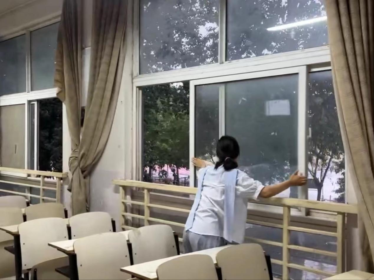 6月16日早晨,狂风肆虐,暴雨突降。鉴于此前天气炎热,教室内多数门窗敞开,为维护校园安全并防范因降水增多可能导致的各种风险,学前与艺术教育学院7位学生紧急前往学院关闭门窗。