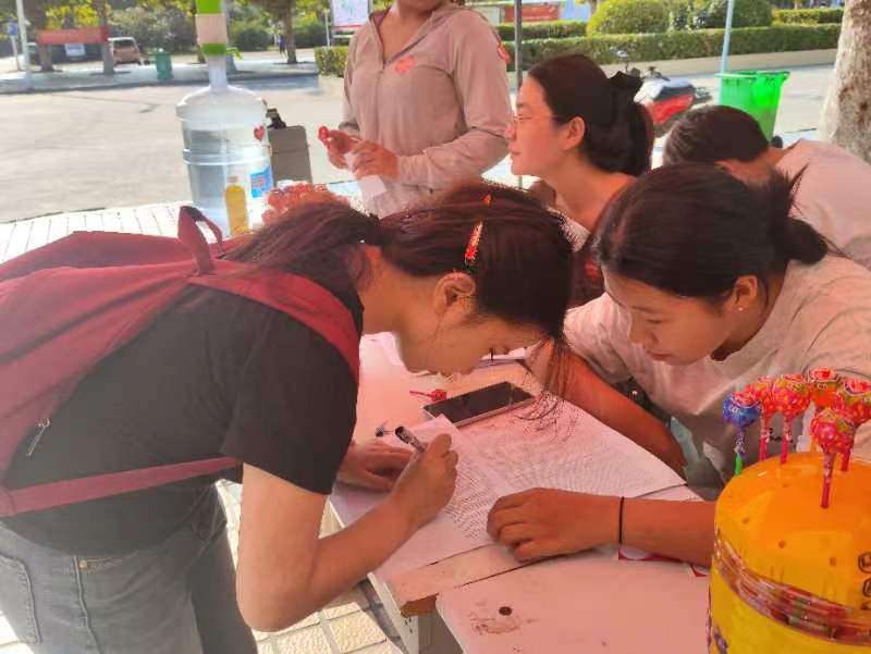为了提高效率,学院精心设计返校登记流程指示牌,确保返校学生快捷地完成返校流程。天气炎热,学院还特别为每位学子准备了象征甜蜜、团圆的棒棒糖和平安帖。