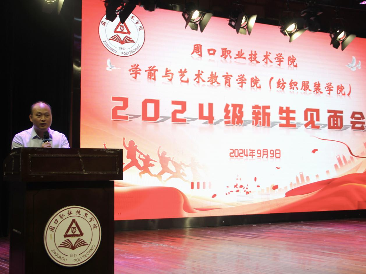 为了尽快让2024级新生熟悉学院环境、增强学院归属感,更好地适应大学生活,9月9日,学前与艺术教育学院(纺织服装学院)在砺德厅召开2024级新生见面会,学院党总支书记王春生、院长高岐奎、副院长杨晨、学管办主任郑玉凡、教管办主任李晨阳、各教研室主任、24级各班辅导员、24级全体新生共同参加本次会议,会议由党总支书记王春生主持。