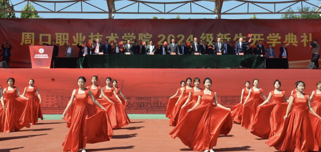 2024级新生开学典礼暨军训汇演在《我和我的祖国》的歌声和舞蹈中落下帷幕。