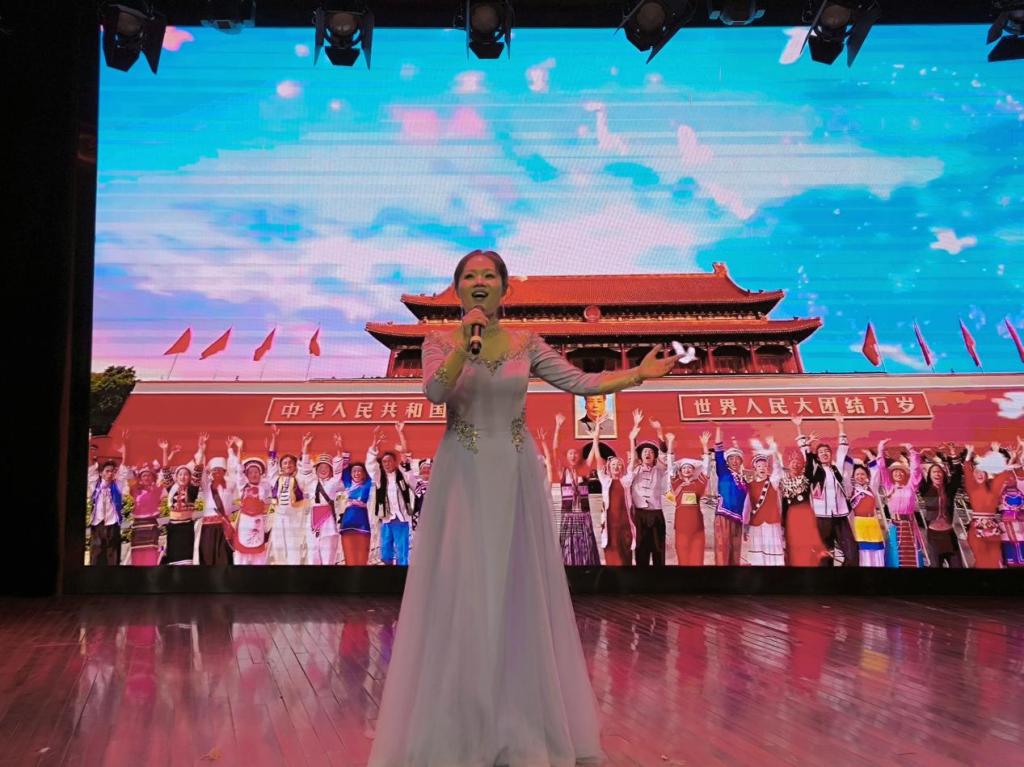 高飞唱响《祖国,我深深的爱你》这首歌时,整个会场都被一种庄严而炽热的情感所笼罩。