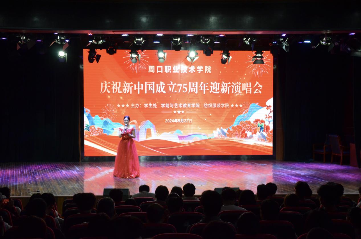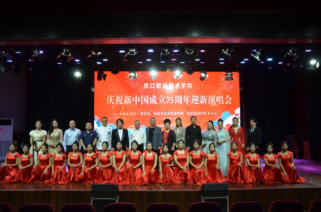 9月22日下午,由学生处、学前与艺术教育学院(纺织服装学院)、体育学院联合主办的庆祝新中国成立75周年迎新演唱会在校砺德厅圆满举行,周口职业技术学院校党委副书记李明臣、学生处处长刘冬霞、体育学院党总支书记范伟杰、学前与艺术教育学院党总支书记王春生、院长高岐奎出席活动。