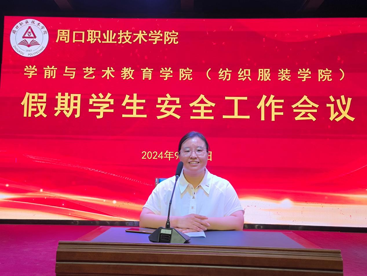 为切实做好学院国庆节期间学生安全稳定工作,9月29日,学前与艺术教育学院(纺织服装学院)在艺术演播厅召开假期学生安全工作会议。副院长杨晨、学管办主任郑玉凡、教管办主任李晨阳、23、24级辅导员及38名留校学生共同参加本次会议。