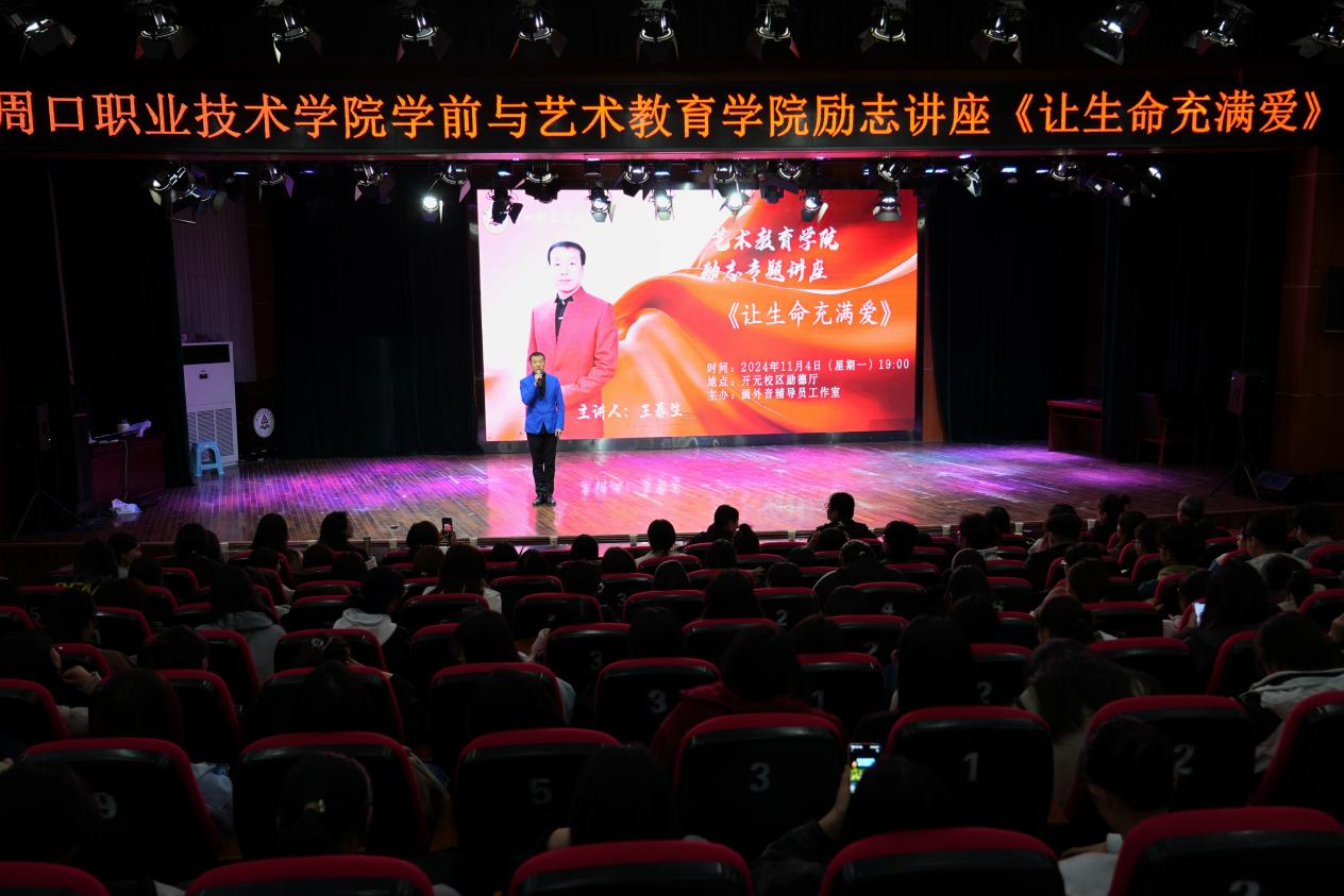 为帮助同学们树立正确的人生观、价值观,积极奉献社会,传递爱心,11月4日晚上,周口职业技术学院学前与艺术教育学院(纺织服装学院)“画外音”辅导员工作室在砺德厅开展《让生命充满爱》励志专题讲座活动。周口市中心血站血源科科长李米罗、周口职业技术学院学生处副处长王换换、学院副院长杨晨出席本次活动,学院全体辅导员及23、24级学生参加活动,党总支书记王春生主讲。