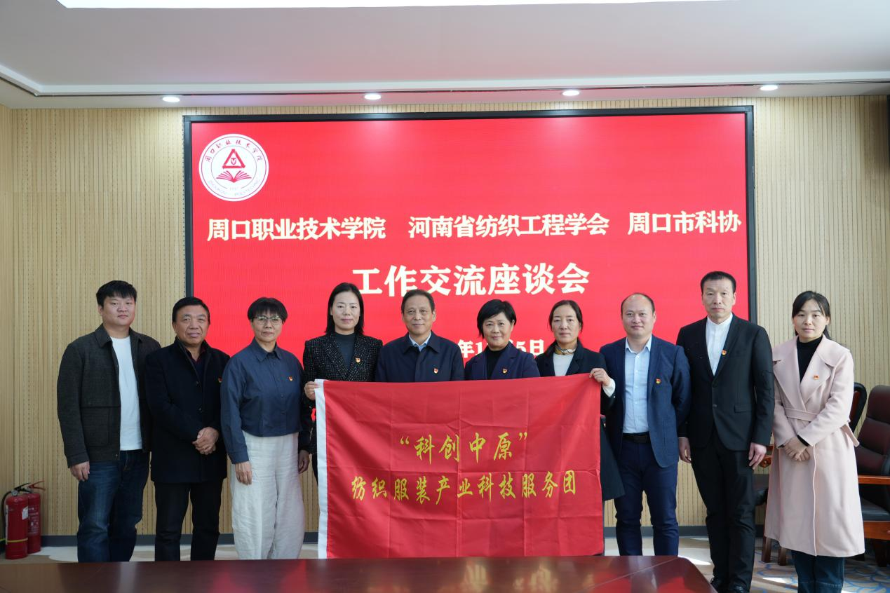 11月5日上午,周口职业技术学院与河南省纺织工程学会、周口市科协在校第六会议室举行工作交流座谈会。河南省纺织工程学会会长杨润凯、周口职业技术学院副校长于爱霞出席会议,周口市科协党组成员、副主席徐倩,河南省纺织工程学会副理事长陈国玉,副秘书长赵艳红,科协学会部副部长陈柏杨,教务处处长李嘉,科研处处长张华珍,纺织服装学院党总支书记王春生参加座谈会。会议由纺织服装学院院长高岐奎主持。