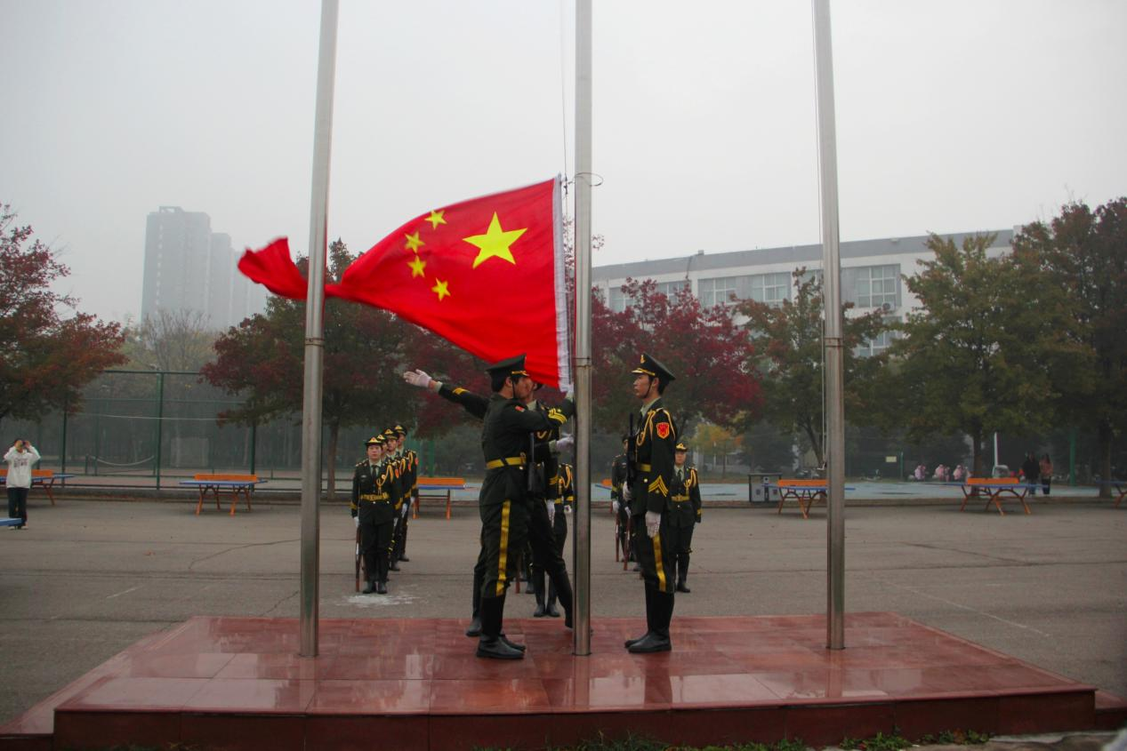 国旗护卫队迈着稳健整齐的步伐走向升旗台。伴随着雄壮激昂的国歌声,同学们怀着崇高的敬意,注视着鲜艳的五星红旗在晨风中徐徐升起,胸中激荡着对伟大祖国的深切热爱与自豪。