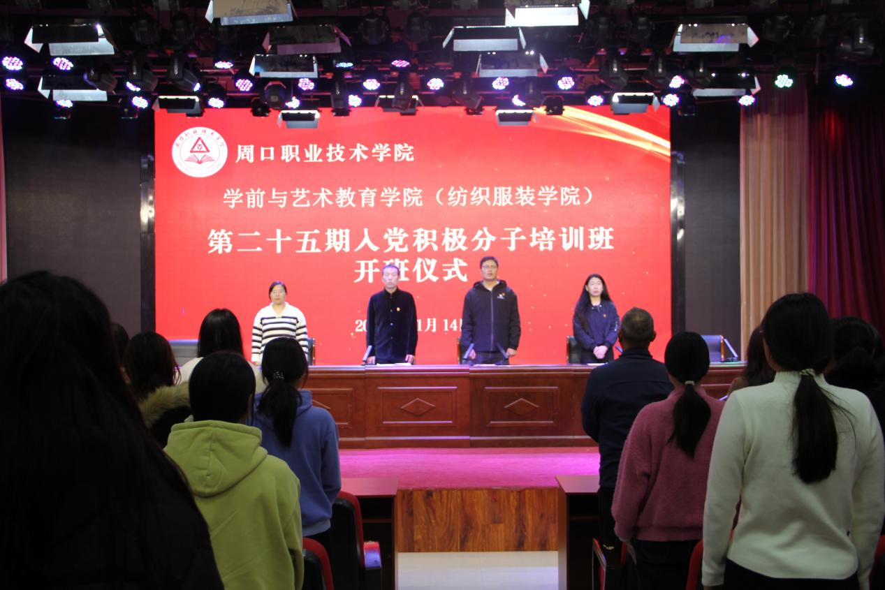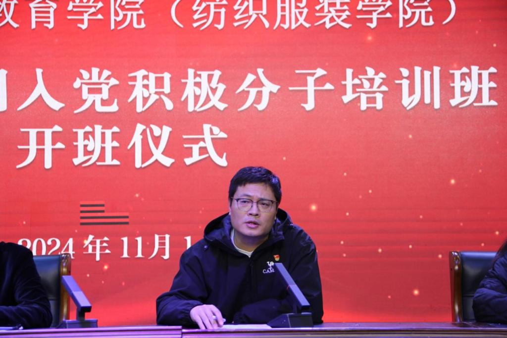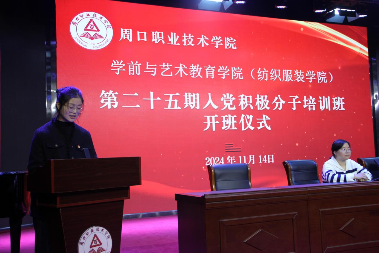 为深入学习贯彻习近平新时代中国特色社会主义思想,践行党的新时代奋斗目标,提高入党积极分子的政治觉悟和理论水平,保证党员队伍质量。11月14日下午,学前与艺术教育学院(纺织服装学院)在学院艺术演播厅举行第二十五期入党积极分子培训班开班仪式。学院党总支书记王春生、学管办主任郑玉凡、学生党支部组织委员刘馨馨、23级、24级辅导员及第二十五期入党积极分子参加开班仪式。仪式由副院长杨晨主持。