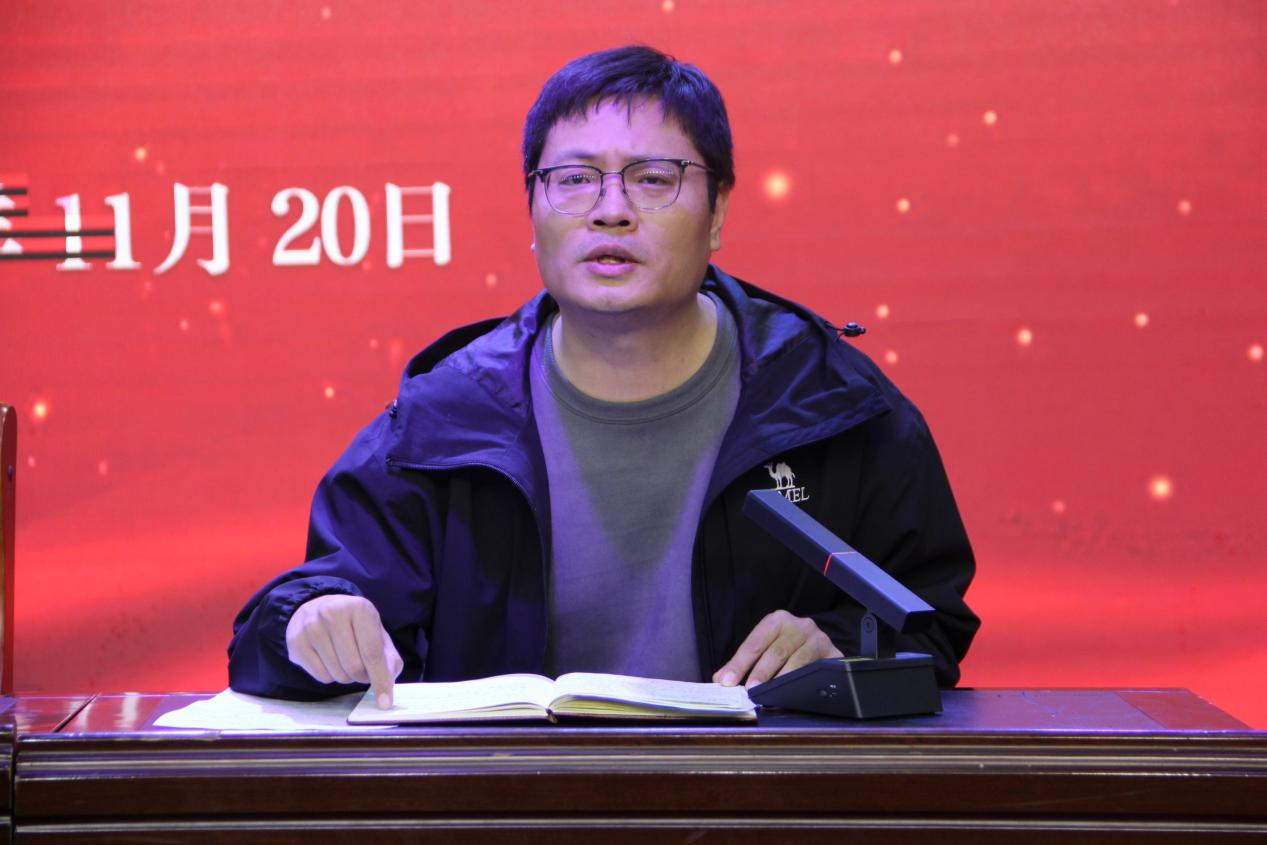 杨晨传达学校精神文明工作动员会的相关内容,他表示要推动学院精神文明建设迈向新台阶,关键在于加强行为准则教育,只有不断的提高认识,自我约束,言行一致,才能更好的展现新时代大学生的精神风貌。
