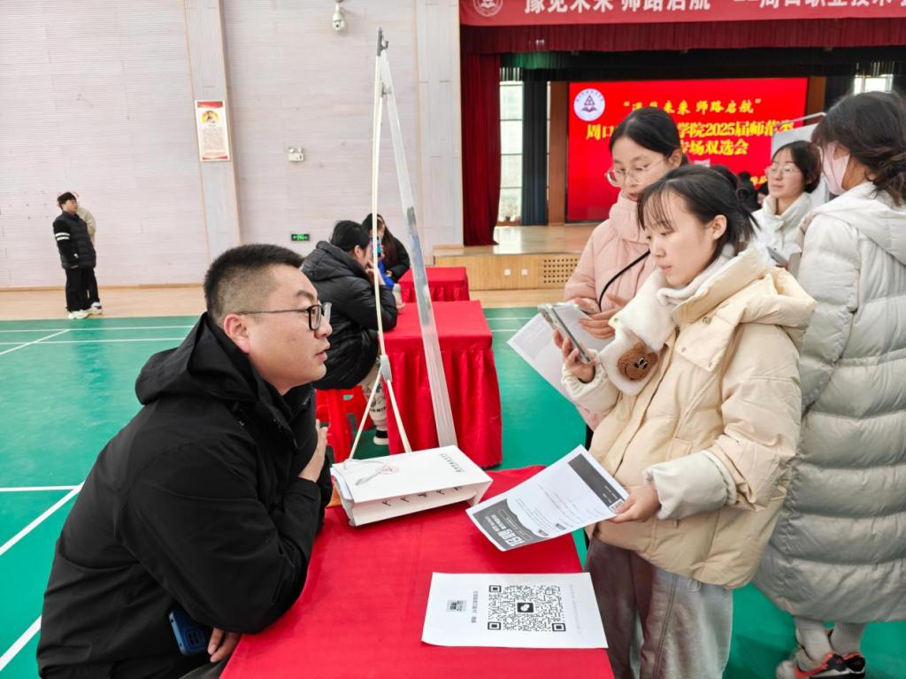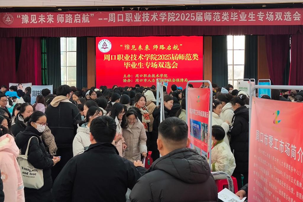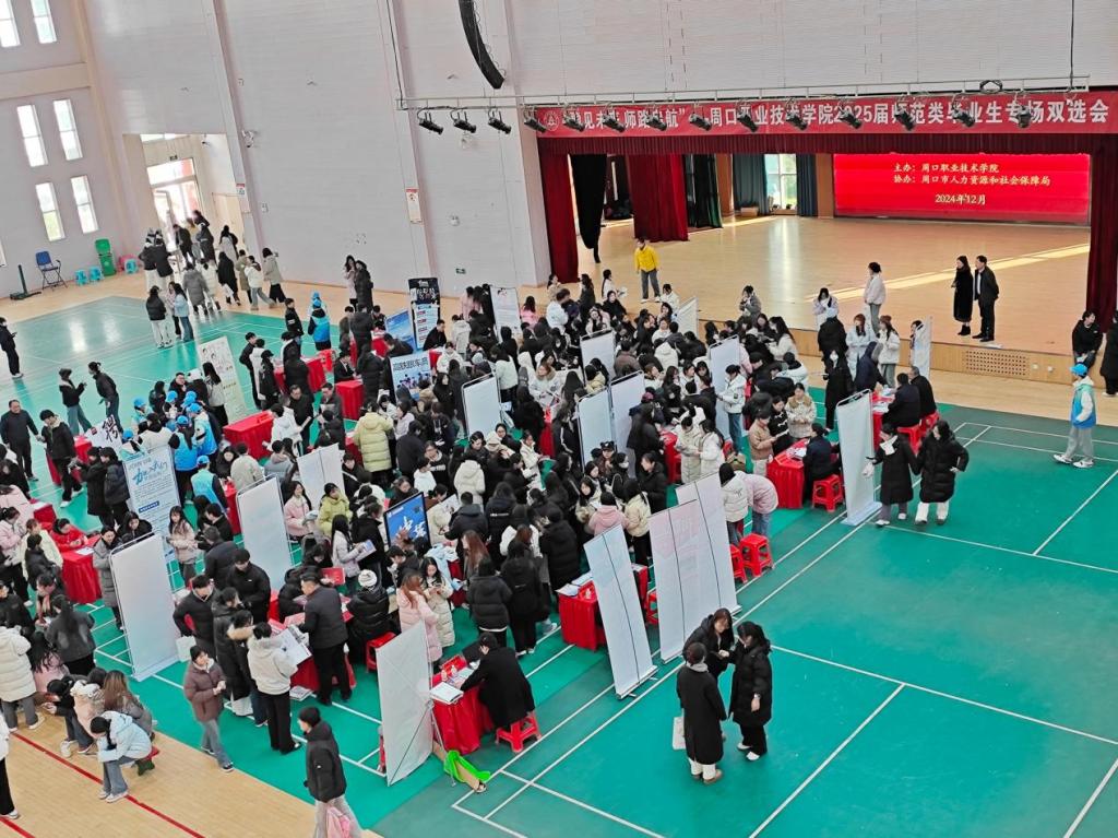 为进一步强化我院就业工作质量,提高学前教育、早期教育等专业就业率和就业质量,12月14日下午,我院700余名学生赴学校体育馆参加由周口职业技术学院主办、周口市人力资源和社会保障局协办的2025届师范类毕业生专场双选会。