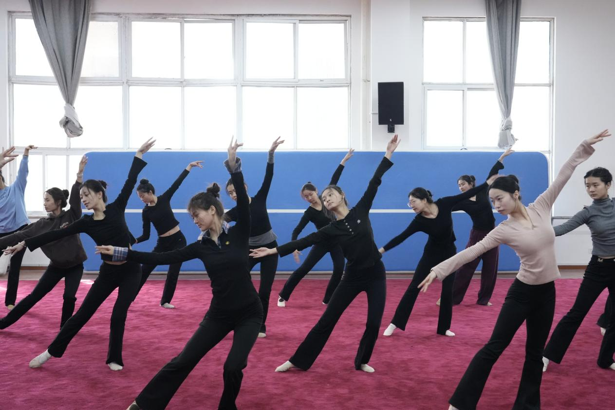 1月14日上午,周口职业技术学院校长李清臣、副校长李秀萍、副校长于爱霞、学生处处长刘冬霞一行前往学前与艺术教育学院排练现场,看望和慰问我校参演2025周口春晚节目的30余名师生。