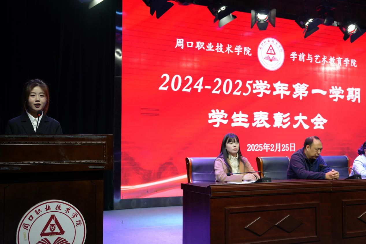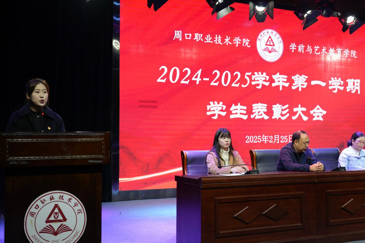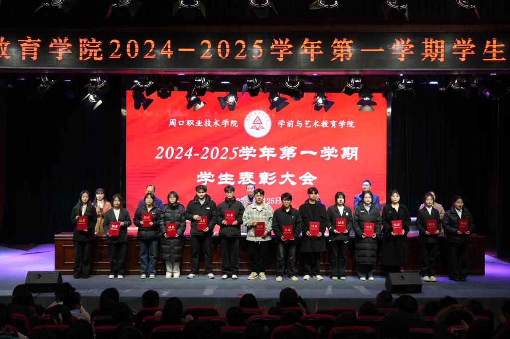 为推动学院学生工作高质量发展,发挥先进典型的示范引领作用,激励学生见贤思齐、争创佳绩。2月25日晚,学前与艺术教育学院(纺织服装学院)在校砺德厅举行2024-2025学年第一学期学生表彰大会。学院全体班子成员、教研室主任、辅导员及23、24级学生参加会议。大会由院长高岐奎主持。