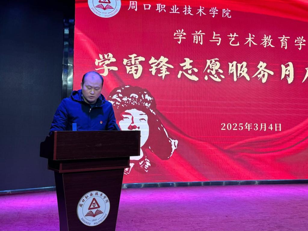 王春生宣读《学前与艺术教育学院学雷锋志愿服务月活动方案》。