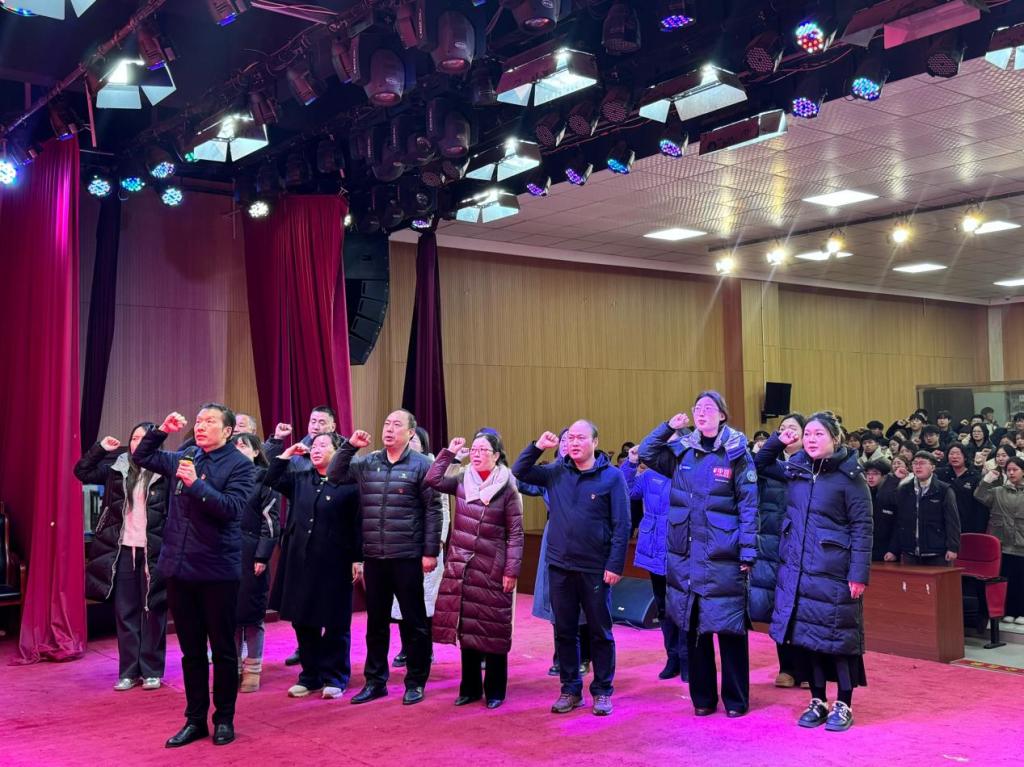 国歌奏响,仪式拉开帷幕。全体师生肃立,齐唱国歌,嘹亮歌声彰显新时代青年的责任担当。